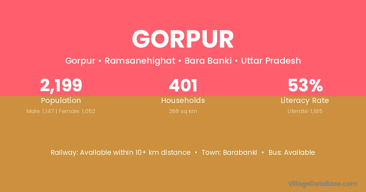 Barabanki is the nearest town to Gorpur village for major economic activities