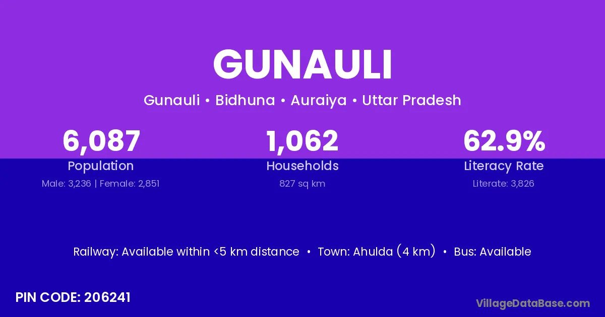 According to Census 2011 information, the village code of Gunauli village is 225402.
