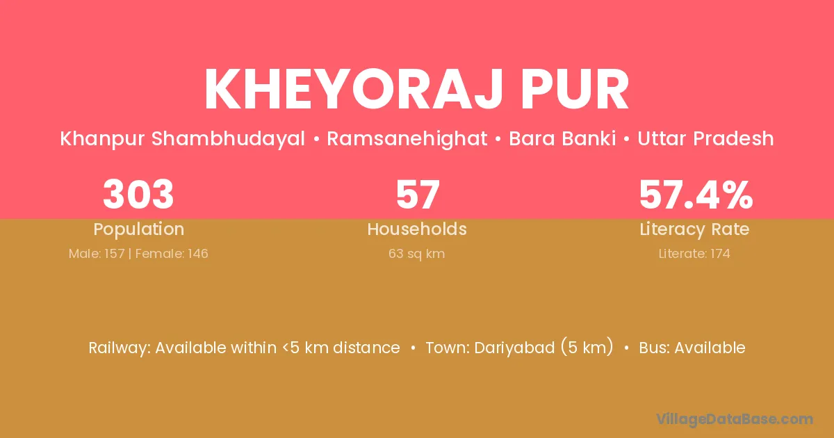 Kheyoraj Pur village has a total population of 303 people, of which 157 are males and 146 are females.