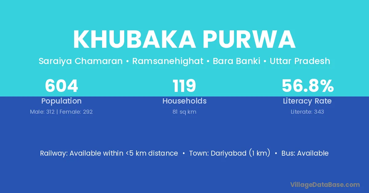 Dariyabad (1 km) is the nearest town to Khubaka Purwa village for major economic activities and is located approximately 1 km away.