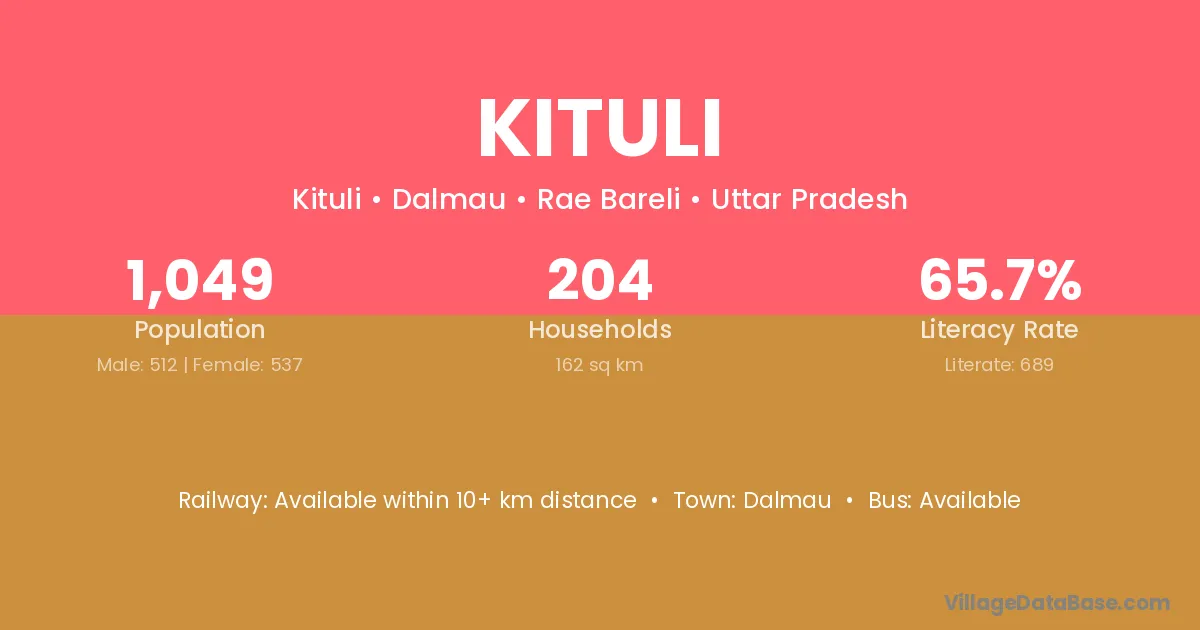 Barabanki (9 km) is the nearest town to Kituli village for major economic activities and is located approximately 9 km away.