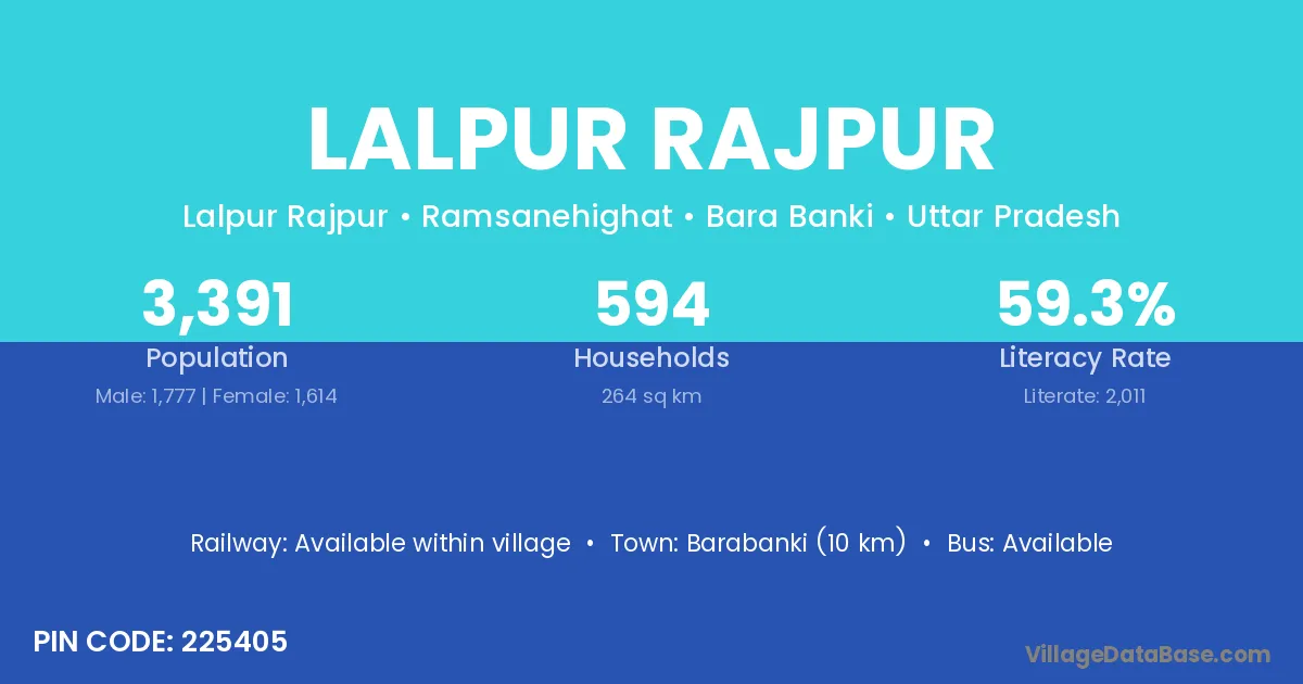 Barabanki (10 km) is the nearest town to Lalpur Rajpur village for major economic activities and is located approximately 10 km away.