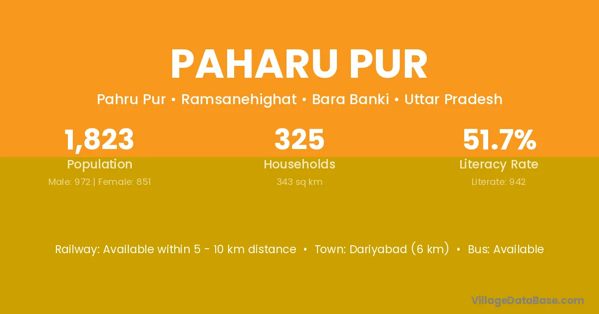 Dariyabad (6 km) is the nearest town to Paharu Pur village for major economic activities and is located approximately 6 km away.