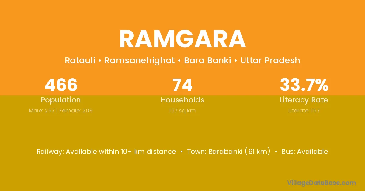 Barabanki (61 km) is the nearest town to Ramgara village for major economic activities and is located approximately 61 km away.