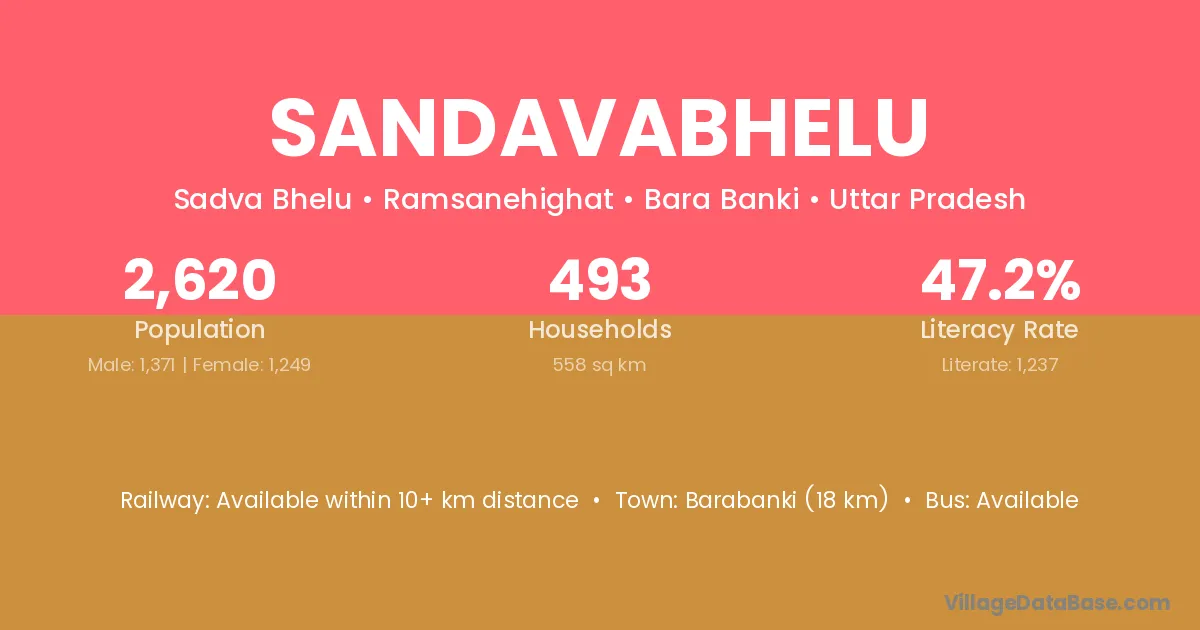 Barabanki (18 km) is the nearest town to Sandavabhelu village for major economic activities and is located approximately 18 km away.