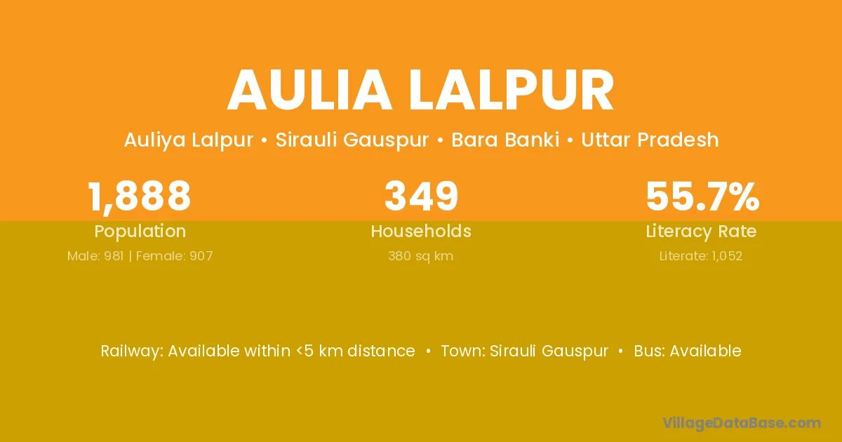 Aulia Lalpur village has a total population of 1,888 people, of which 981 are males and 907 are females.
