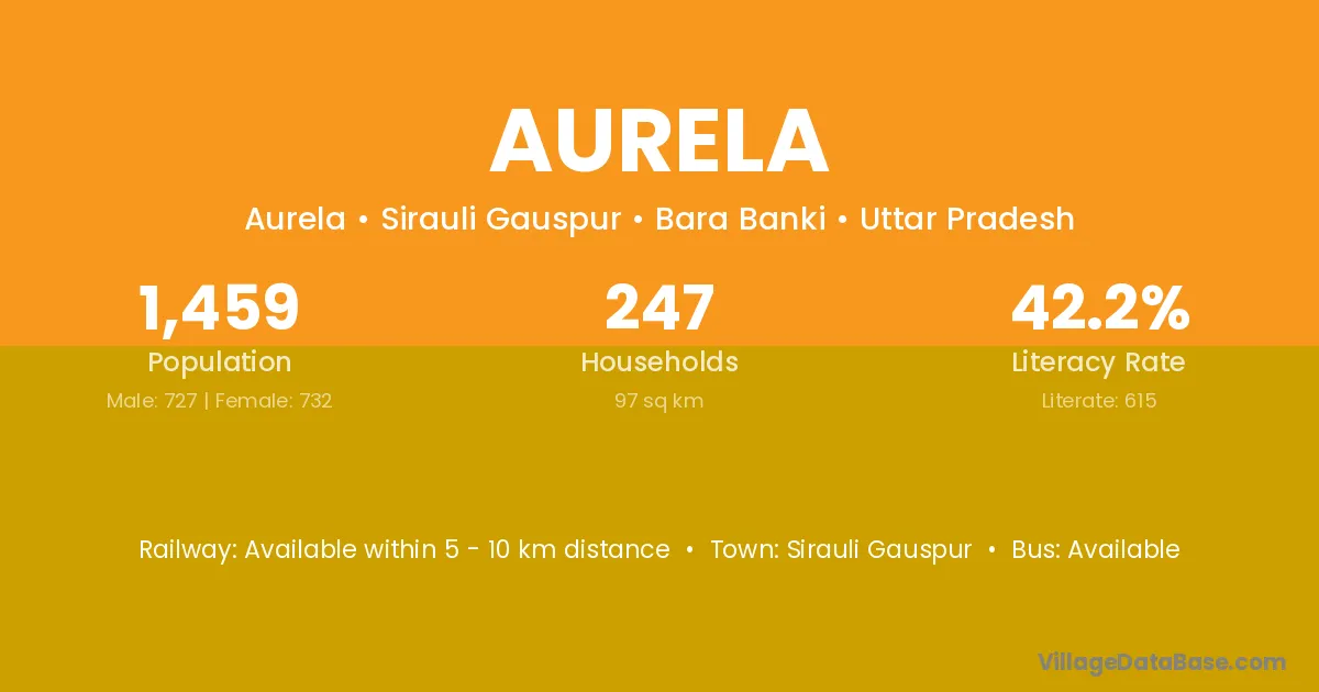 Aurela village has a total population of 1,459 people, of which 727 are males and 732 are females.