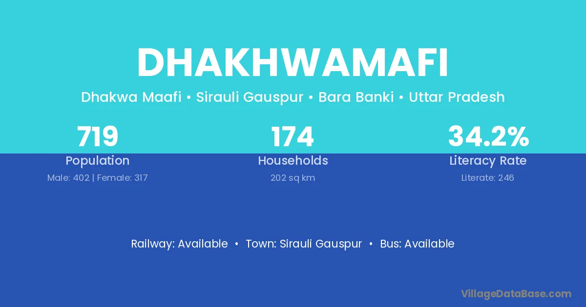 Dhakhwamafi village has a total population of 719 people, of which 402 are males and 317 are females.