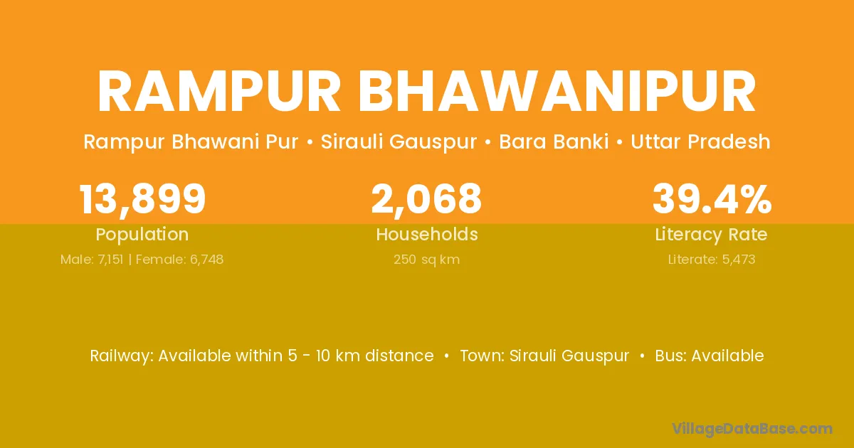 Rampur Bhawanipur village has a total population of 13,899 people, of which 7,151 are males and 6,748 are females.