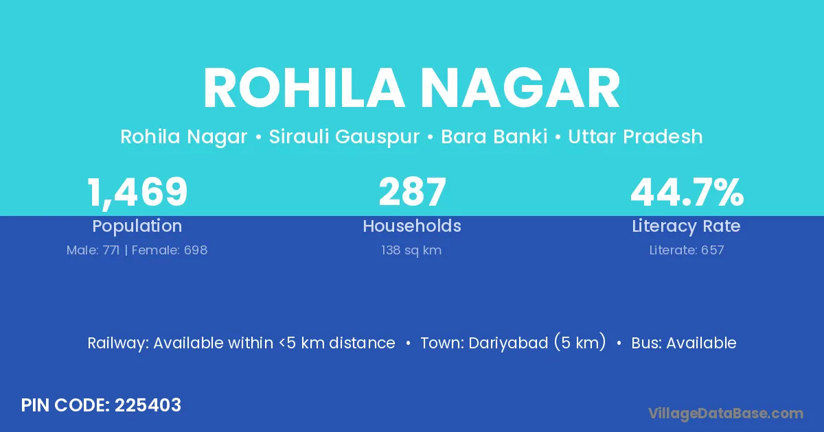Dariyabad (5 km) is the nearest town to Rohila Nagar village for major economic activities and is located approximately 5 km away.