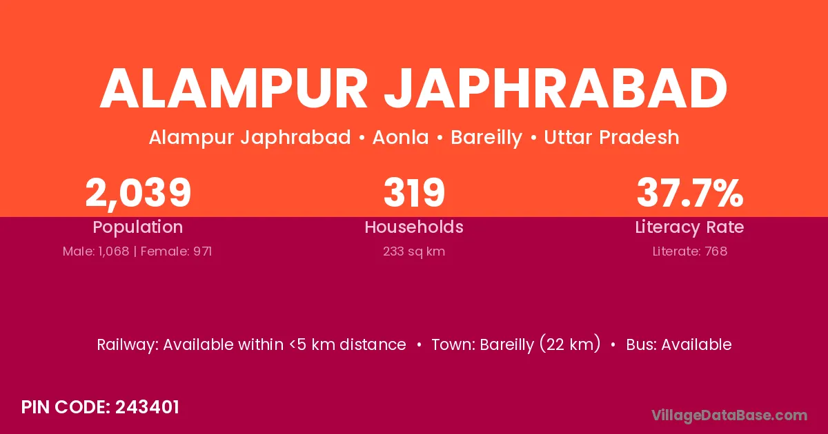 According to Census 2011 information, the village code of Alampur Japhrabad village is 243401.