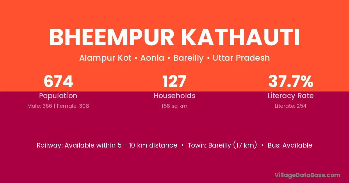 Bheempur Kathauti village has a total population of 674 people, of which 366 are males and 308 are females.