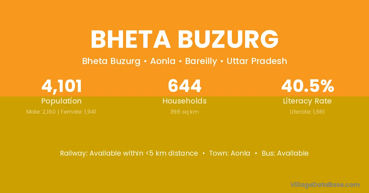 Aonla is the nearest town to Bheta Buzurg village for major economic activities