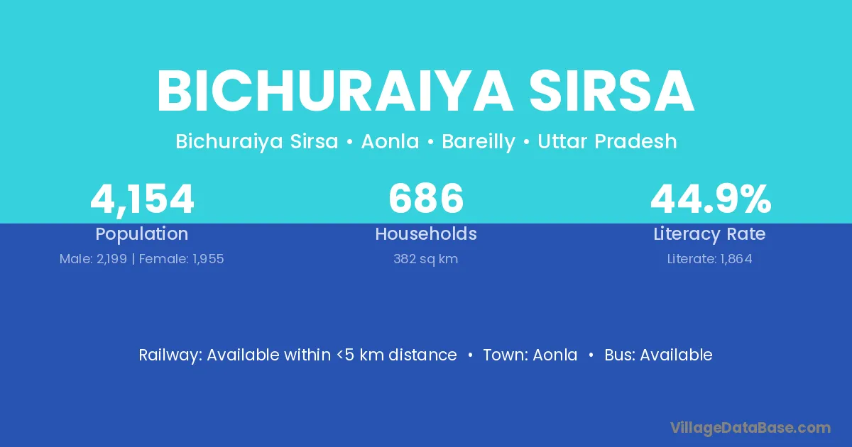 Aonla is the nearest town to Bichuraiya Sirsa village for major economic activities