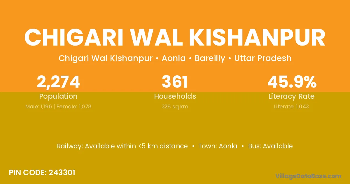 Aonla is the nearest town to Chigari Wal Kishanpur village for major economic activities