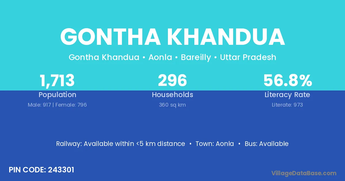 Aonla is the nearest town to Gontha Khandua village for major economic activities