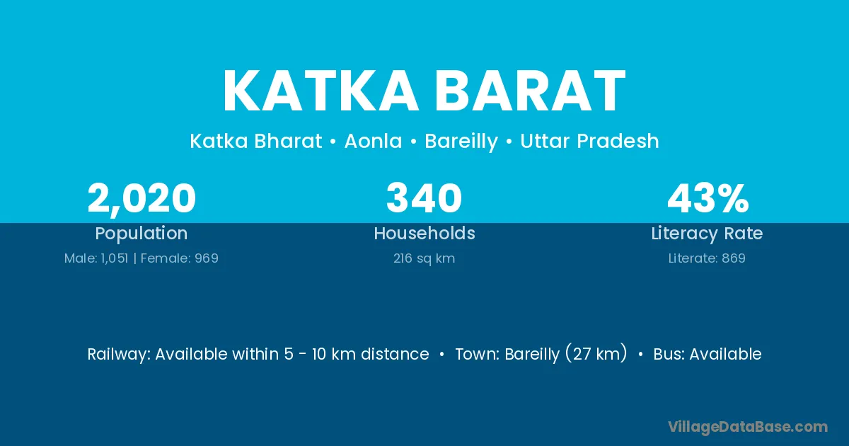 Bareilly (27 km) is the nearest town to Katka Barat village for major economic activities and is located approximately 27 km away.