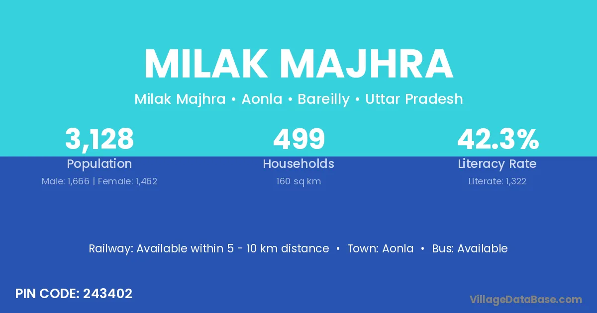 Aonla is the nearest town to Milak Majhra village for major economic activities