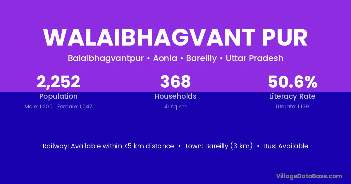Bareilly (3 km) is the nearest town to Walaibhagvant Pur village for major economic activities and is located approximately 3 km away.