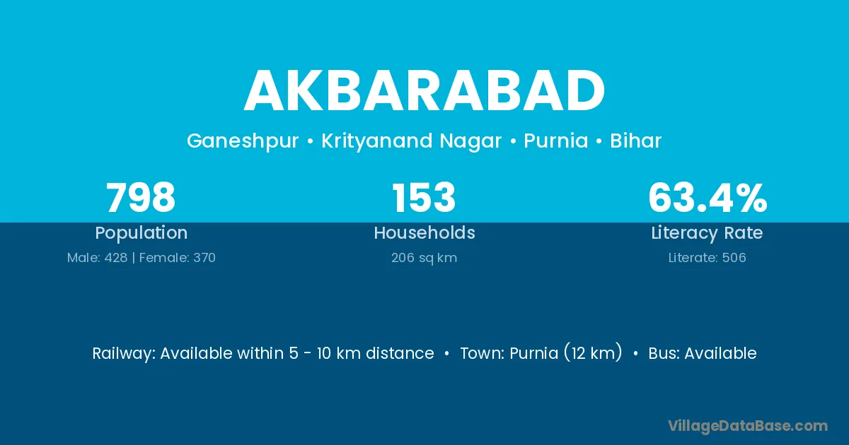 Akbarabad village has a total population of 945 people, of which 483 are males and 462 are females.