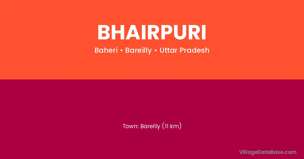 Bareilly (11 km) is the nearest town to Bhairpuri village for major economic activities and is located approximately 11 km away.
