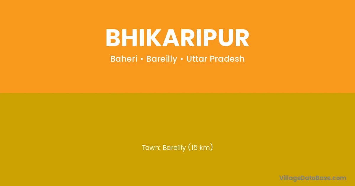 Bareilly (15 km) is the nearest town to Bhikaripur village for major economic activities and is located approximately 15 km away.