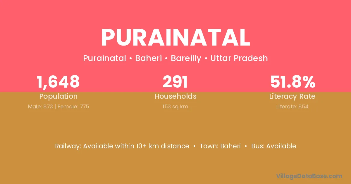 Purainatal village has a total population of 1,648 people, of which 873 are males and 775 are females.