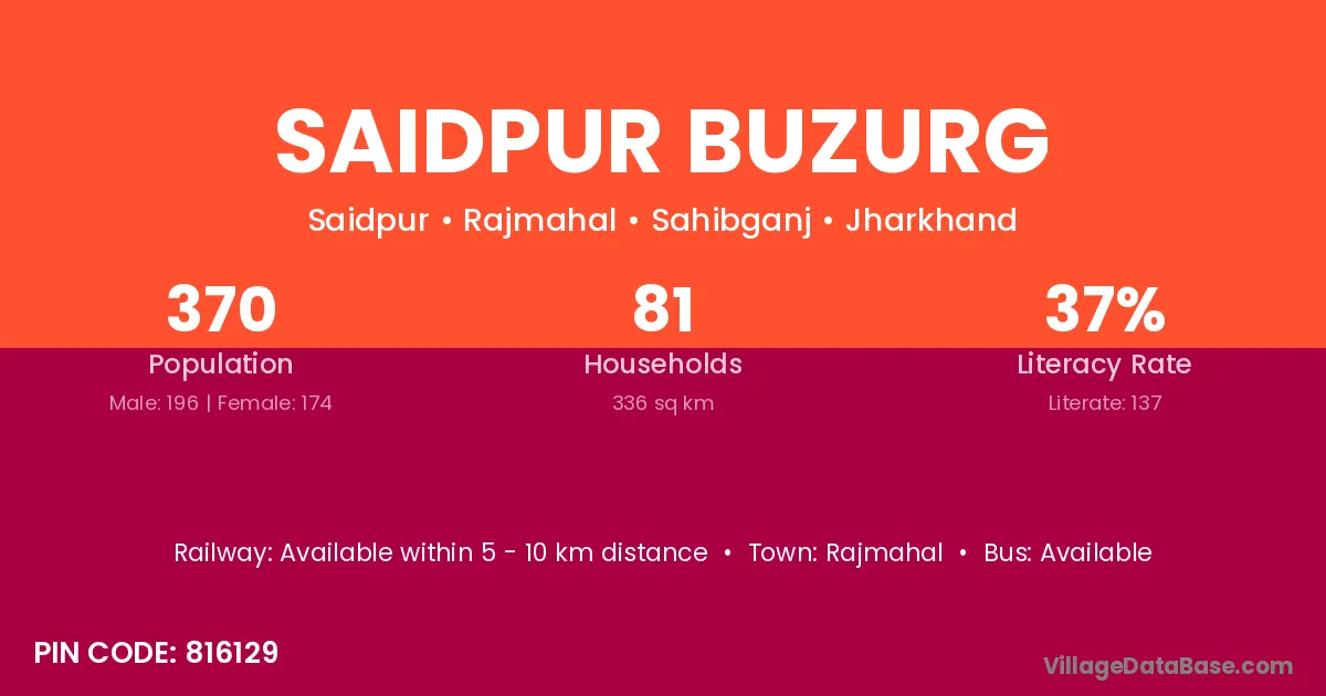 The literacy rate of Saidpur Buzurg village is 56.71%. Male literacy stands at 61.68% and female literacy at 51.55%.