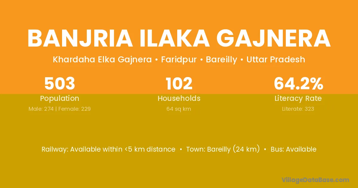 Bareilly (24 km) is the nearest town to Banjria Ilaka Gajnera village for major economic activities and is located approximately 24 km away.