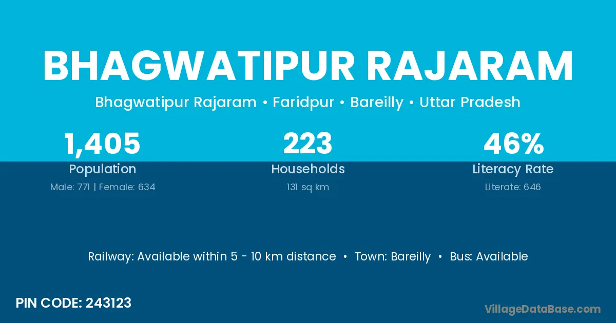 Bareilly is the nearest town to Bhagwatipur Rajaram village for major economic activities