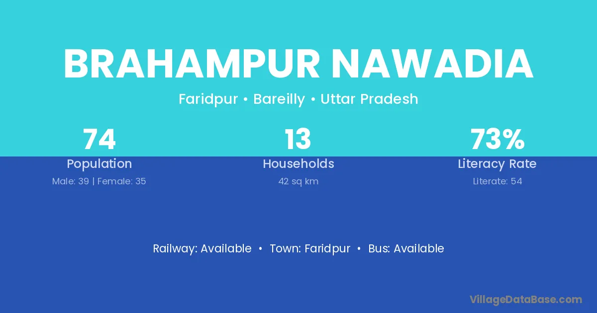 Brahampur Nawadia village has a total population of 74 people, of which 39 are males and 35 are females.