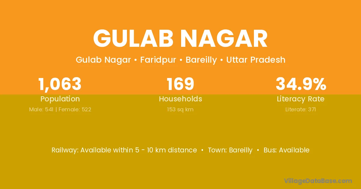Bareilly is the nearest town to Gulab Nagar village for major economic activities