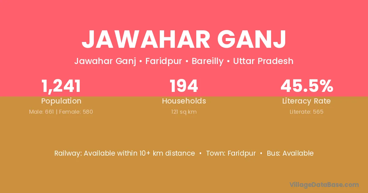 Jawahar Ganj village has a total population of 1,241 people, of which 661 are males and 580 are females.
