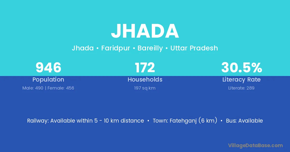 Fatehganj (6 km) is the nearest town to Jhada village for major economic activities and is located approximately 6 km away.