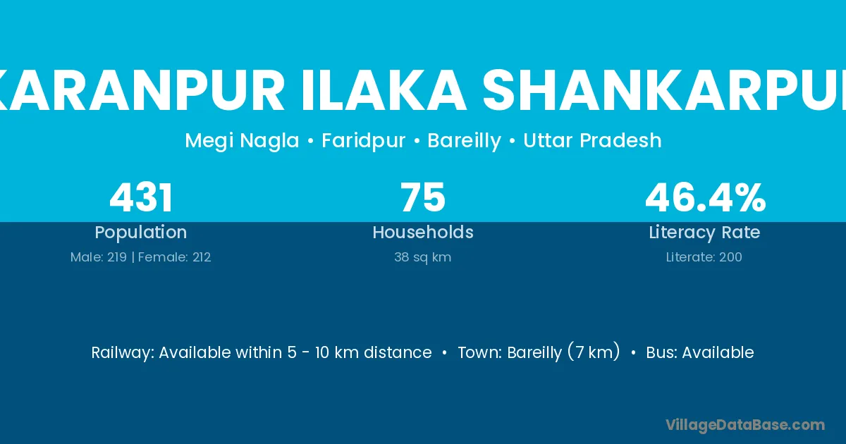 Karanpur Ilaka Shankarpur village has a total population of 431 people, of which 219 are males and 212 are females.