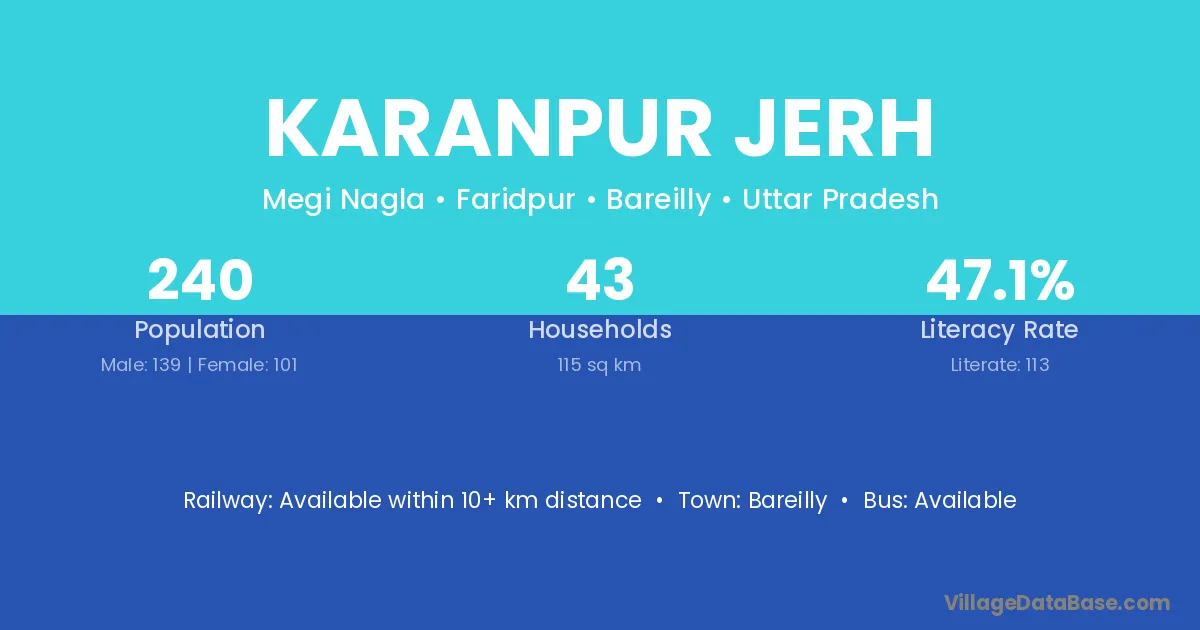 Bareilly is the nearest town to Karanpur Jerh village for major economic activities