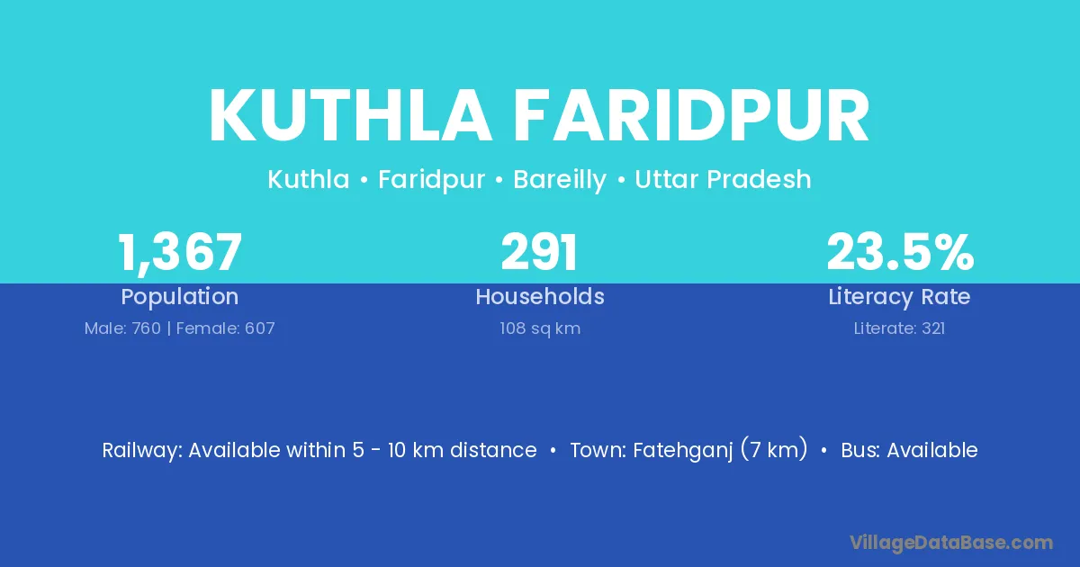 Fatehganj (7 km) is the nearest town to Kuthla Faridpur village for major economic activities and is located approximately 7 km away.
