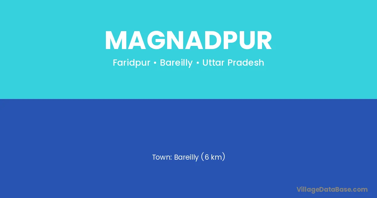 Bareilly (6 km) is the nearest town to Magnadpur village for major economic activities and is located approximately 6 km away.