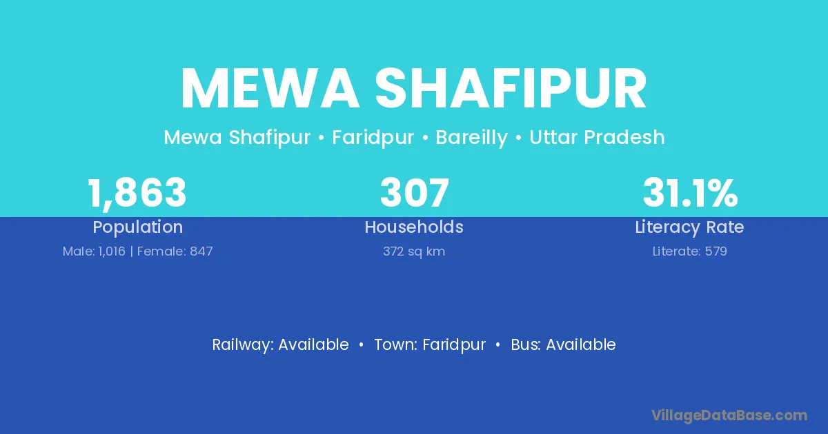 Mewa Shafipur village has a total population of 1,863 people, of which 1,016 are males and 847 are females.