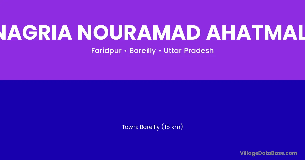 Bareilly (15 km) is the nearest town to Nagria Nouramad Ahatmali village for major economic activities and is located approximately 15 km away.