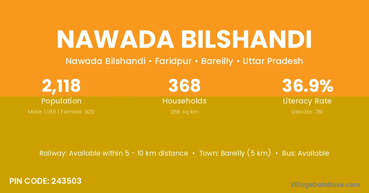 Bareilly (5 km) is the nearest town to Nawada Bilshandi village for major economic activities and is located approximately 5 km away.