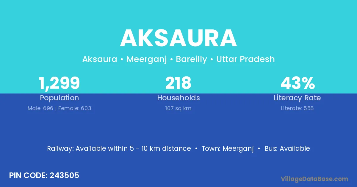 Meerganj is the nearest town to Aksaura village for major economic activities