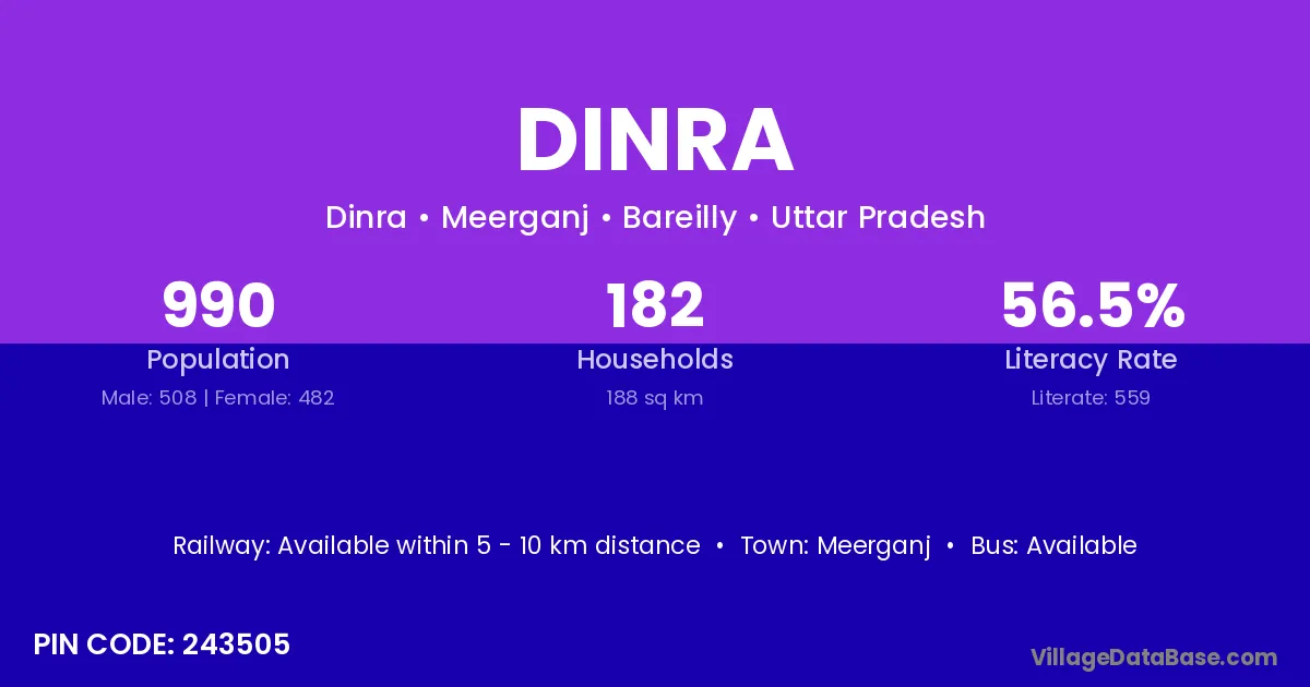 Meerganj is the nearest town to Dinra village for major economic activities