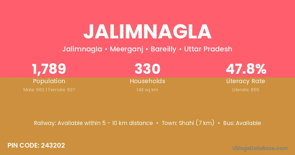 According to Census 2011 information, the village code of Jalimnagla village is 243202.