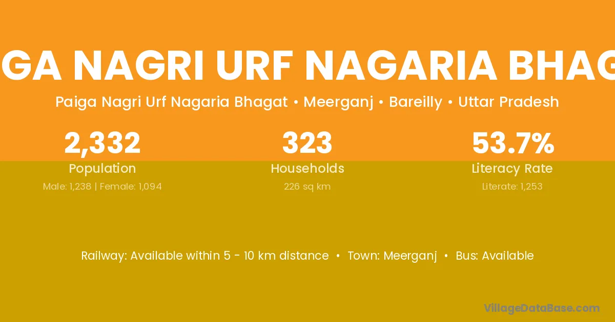 Meerganj is the nearest town to Paiga Nagri Urf Nagaria Bhagat village for major economic activities