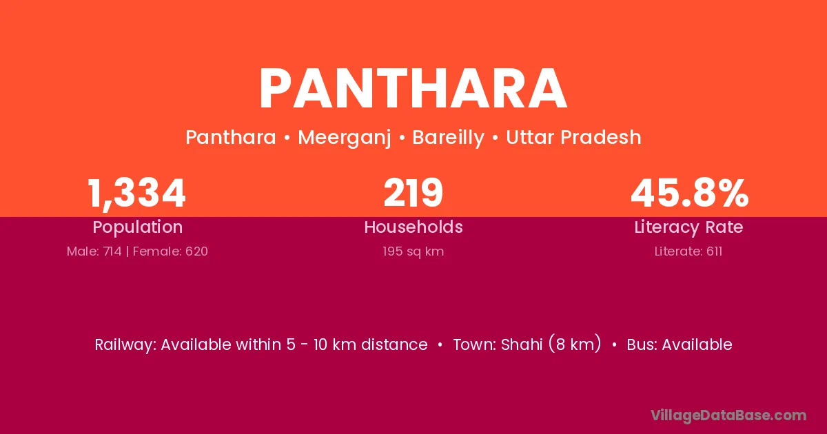 Shahi (8 km) is the nearest town to Panthara village for major economic activities and is located approximately 8 km away.