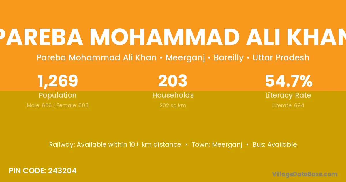 Pareba Mohammad Ali Khan village has a total population of 1,269 people, of which 666 are males and 603 are females.