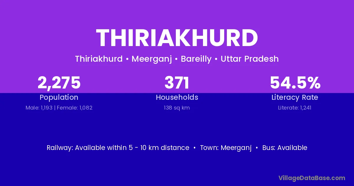 Meerganj is the nearest town to Thiriakhurd village for major economic activities