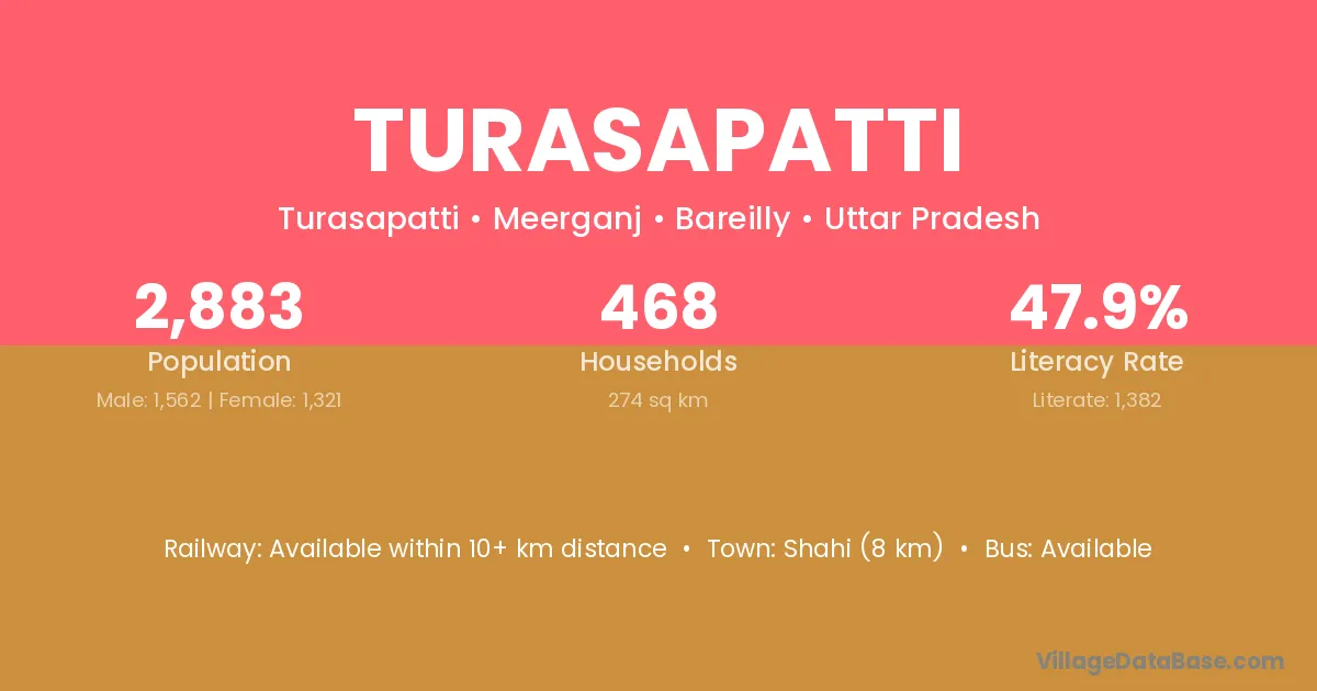 Shahi (8 km) is the nearest town to Turasapatti village for major economic activities and is located approximately 8 km away.