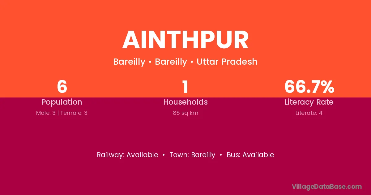 Ainthpur village has a total population of 406 people, of which 226 are males and 180 are females.